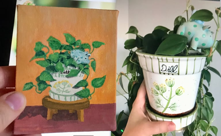 All plants are painted on a 4x4.5 inch canvas with high quality gouache paint, and protected with a UV-resistant finish. Each canvas also comes with an unfinished wooden stand.