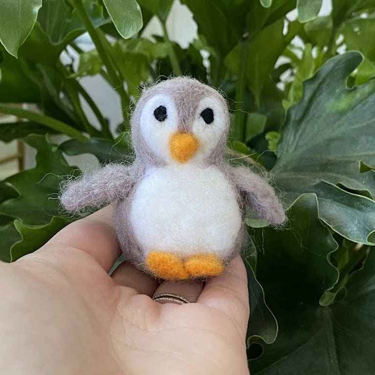 Hand felted 100% wool Baby Penguin. The perfect addition for a bookshelf, desk, or anywhere you want to add a little cuteness to your decor. Classic grey with white design for babies, and black and white for adults. Custom color options available upon request.